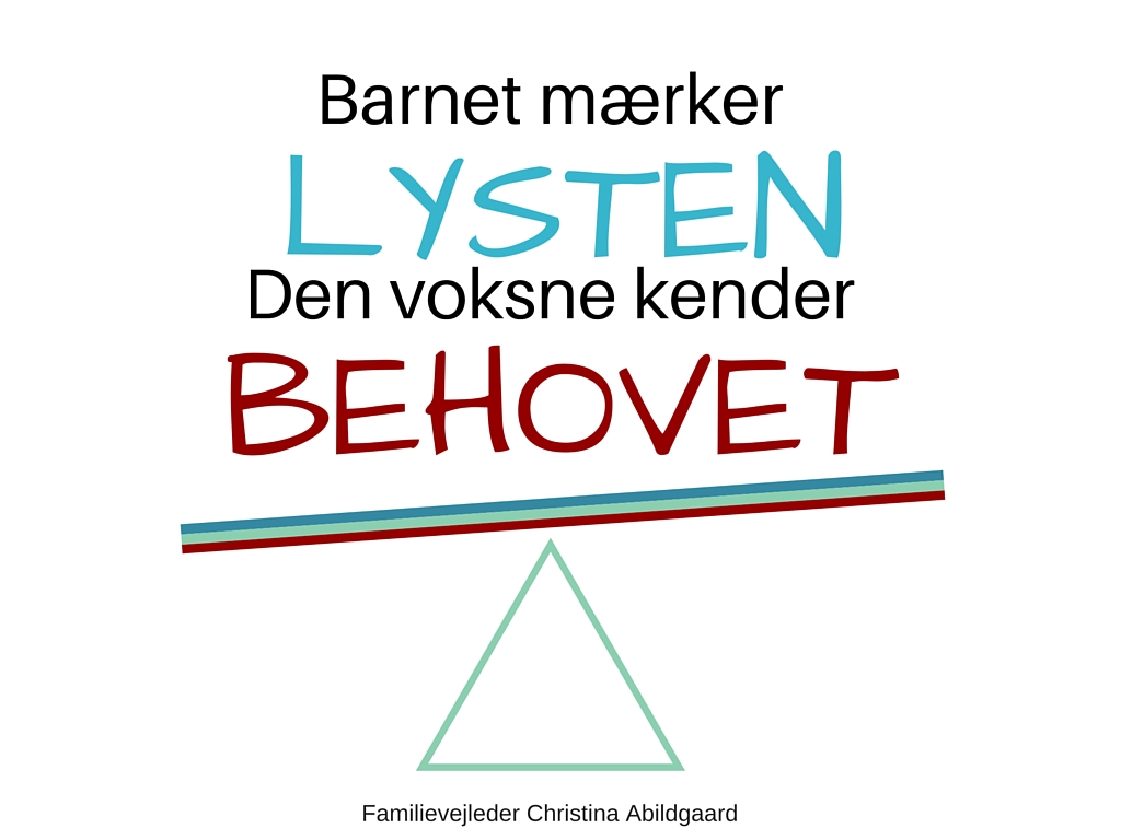 Børn kender deres lyst – hvad de har lyst til lige nu – mens vi som voksne kender barnets behov, både her og nu og på længere sigt.