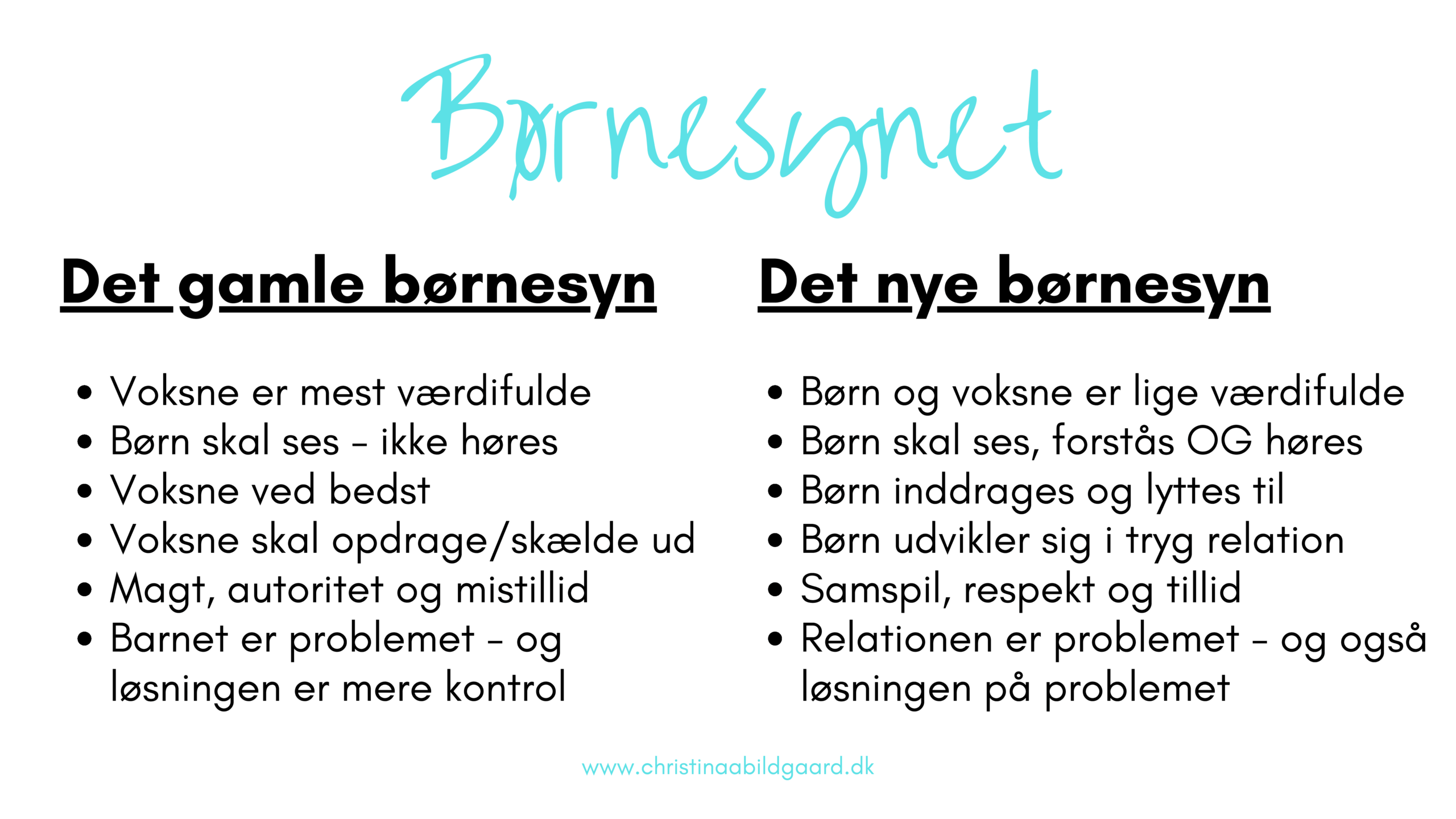 Vi skrifter perspektiv fra ‘Det gamle børnesyn’, hvor man bla. tænker at børn gør det godt, hvis de VIL – over til ‘Det nye børnesyn’, hvor vi tænker at børn gør det godt, hvis de KAN.